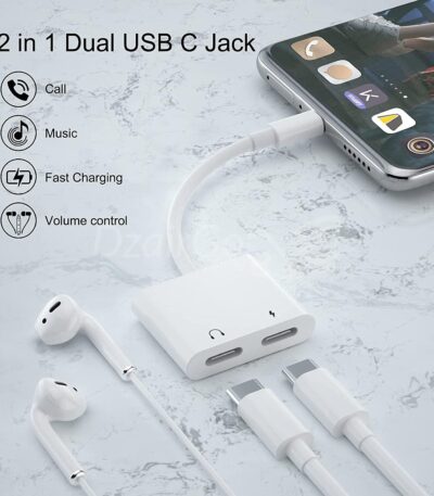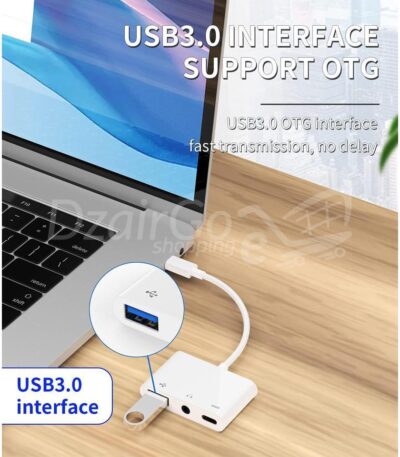 Adaptateur Type C 3en1 vers Jack 3.5 vers USB C pour Écouteurs -live recording adapter