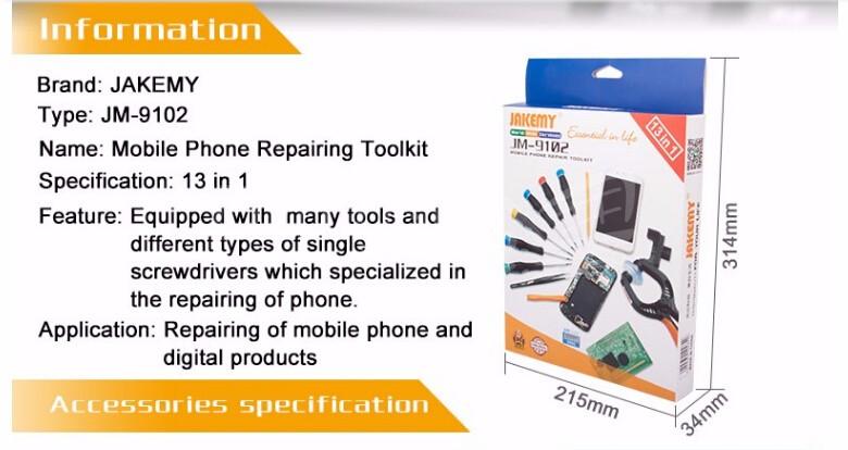 JAKIMEY JM-9102 Ensemble d’outils de réparation de téléphone portable 13 en 1
