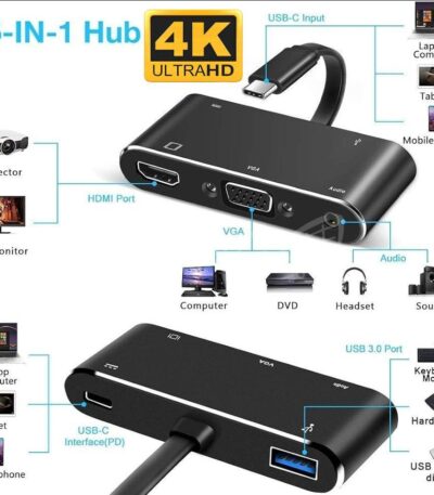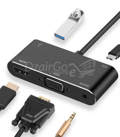 adaptateur Hub 5en1 Type-C vers 4K HDMI/VGA/Audio auxiliaire 3.5/USB 3.1/PD super fast MacBook iPad smartphone fich jack