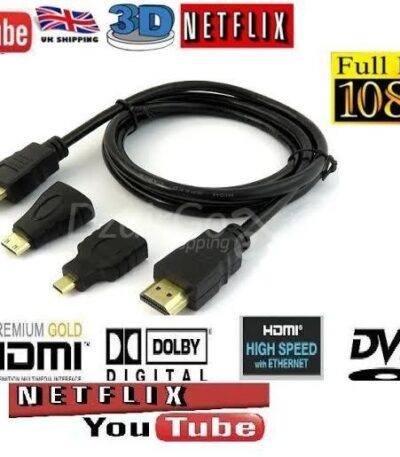 Cable HDMI vers HDMI 3en1 avec 3 adaptateurs / Mini Hdmi / Micro HDMI de 1,5 m Kit de câble HD pour tablette PC TV