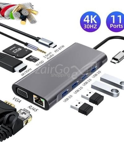 Station d’accueil 11en1 HUB USB C, adaptateur type c , dongle avec HDMI 4K,vga,rj45 , lecteur de carte MacBook /ipad / laptop tc