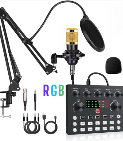 Kits de Microphone BM800 avec Carte Son v8s en Direct RGB , Bras de Suspension en Ciseaux, Support Antichoc et Filtre Anti-Pop