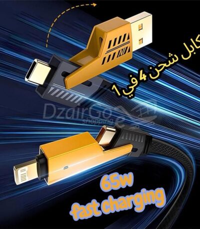 Câble de charge multifonction en nylon tressé durable 4 en 1 à double tête 65w type c lightning usb A