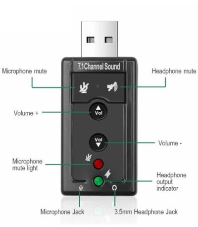Adaptateur De Carte Son usb À Audio Externe Usb Vers To Jack 3.5Mm Virtual 3D 7.1 Avec Microphone