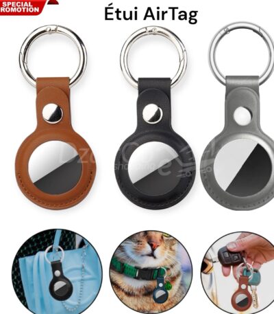 étuis en cuir compatibles avec support Air Tags, étui en cuir synthétique avec porte-clés, étui de protection intégrale Air Tag pour bagages, clés, animaux domestiques (marron/gris/noire)