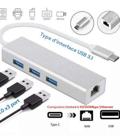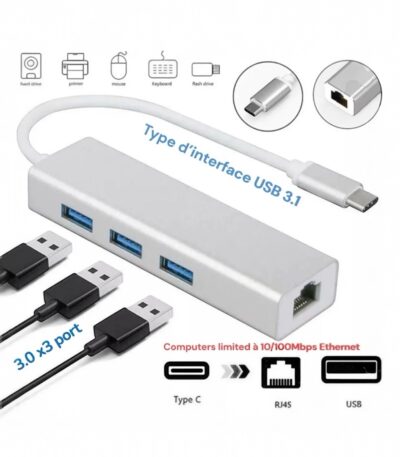 Adaptateur Type-C USB 3.1 vers USB 3.0 3 port avec RJ45 100 Mbps 1000 Mbps Gigabit carte réseau aluminium 1 choix