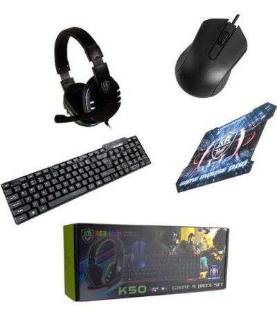 6.700 د.ج – 7.350 د.جPlage de prix : 6.700 د.ج à 7.350 د.جEnsemble de jeu K50, 4 pièces, casque gaming ,souris,clavier,tapis de souris