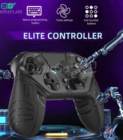 Manette de jeu sans fil GAMINJA à double vibration Bluetooth avec fonction turbo programmable pour PC et PS4/android/ios