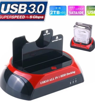 Station d’accueil tout-en-un double SATA 2,5″ 3,5″ pour disque dur USB 3.0
