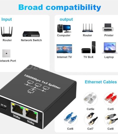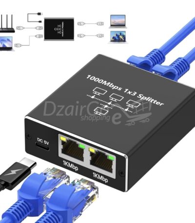 Switch Ethernet 1 à 3 1000Mbps RJ45 Multiprise Répartiteur LAN pour Ordinateurs, Routeurs et Décodeurs