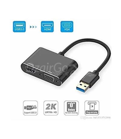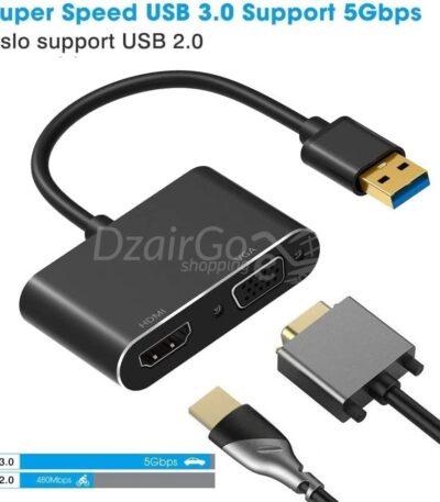 Adaptateur USB 3.0 vers HDMI VGA, convertisseur USB vers VGA HDMI, Sortie de synchronisation 1080p, Compatible avec Windows 7/8/8.1/10, Adaptateur vidéo