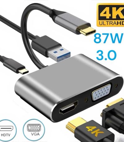 Adaptateur 4en1 Support 4K Type-C to HDMI / VGA / Type-C / USB 3.0