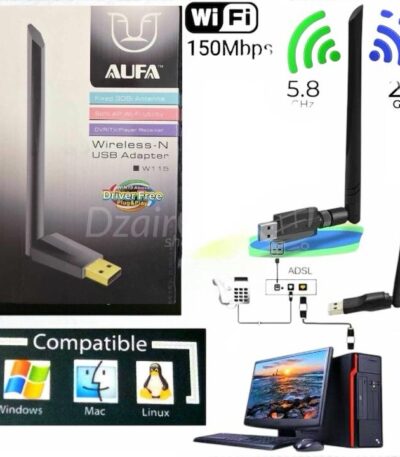 Adaptateur Wi-Fi USB 802.11 N Aufa Net W115 avec antenne fixe – longue portée pour une connectivité sans fil améliorée