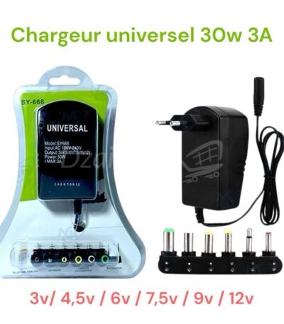Adaptateur secteur universel réglable SY-668, chargeur multi-tension AC 240 V vers DC 3 V 4,5 V 6 V 7,5 V 9 V 12 V, convertisseur de tension 7 30 W avec 6 broches
