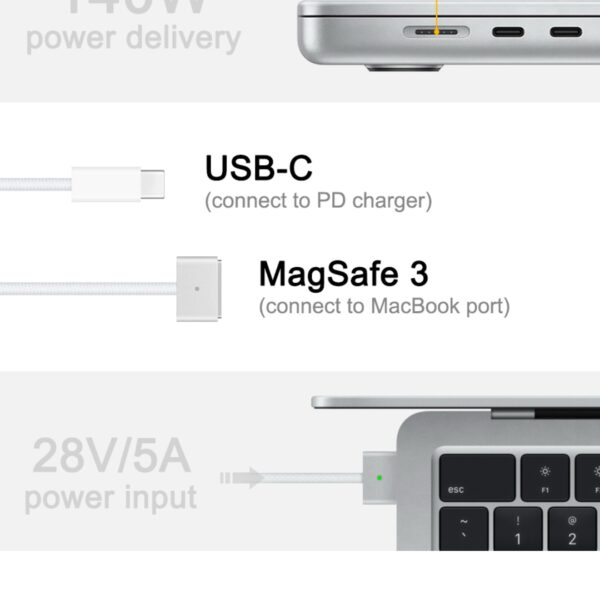 USB Type-C إلى Magsafe Loading Cable 3 (2 م) صب Apple Macbook Air / طليعة