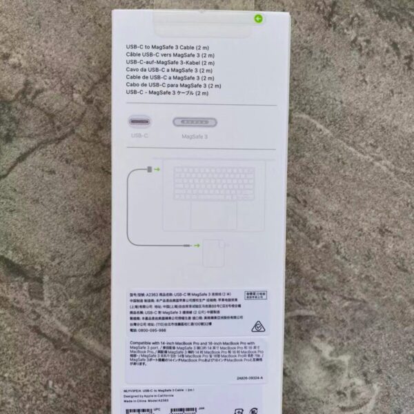 câble Apple USB-C مقابل Magsafe 3 (2 م) – الحمل الحمل الفضي