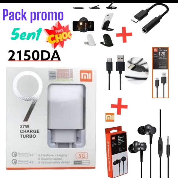 السعر الأصلي هو: 5.500 د.ج.2.750 د.جالسعر الحالي هو: 2.750 د.ج.Pack Promo Xiaomi 5en1 MI / ريدمي