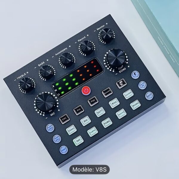 Le prix initial était : 5.500 د.ج.3.690 د.جLe prix actuel est : 3.690 د.ج.Carte de son Bluetooth v8s RGB avec écran ,type c model 2025