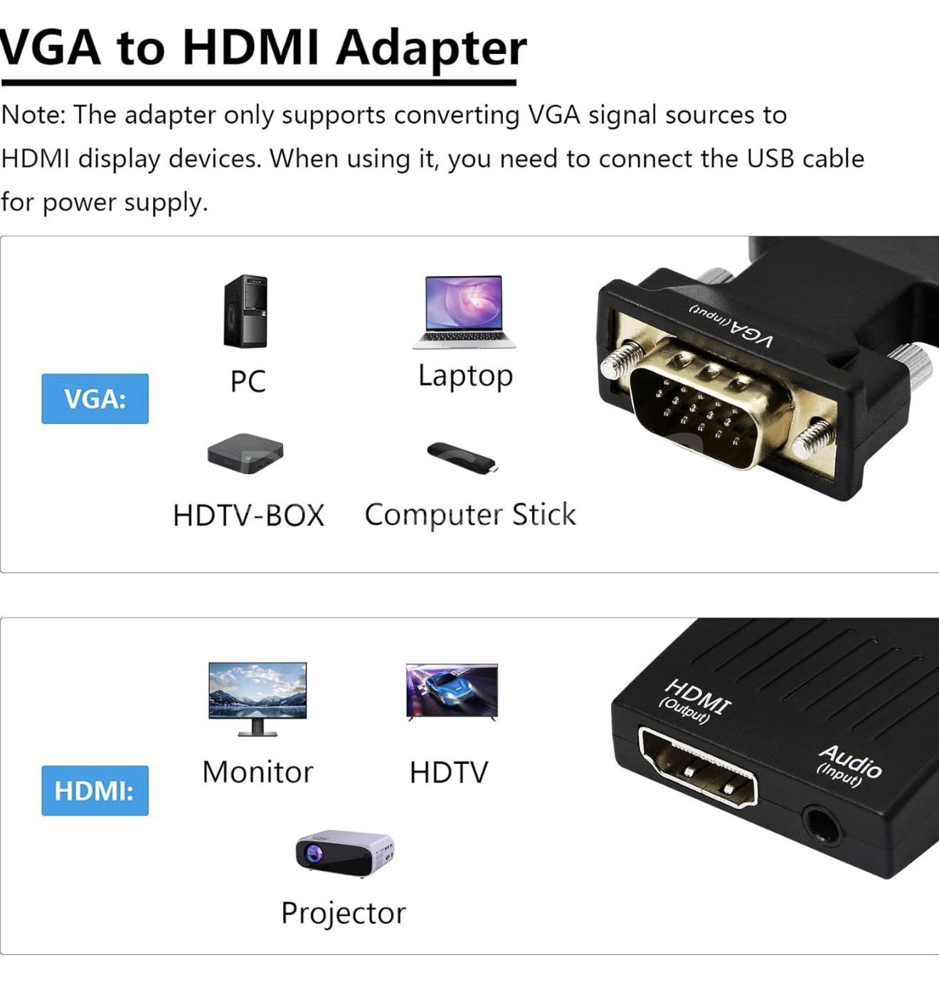 - Convertisseur VGA vers HDMI, l’adaptateur avec port audio de 3,5 mm peut transporter l’audio et la vidéo d’un appareil compatible VGA vers un moniteur ou un projecteur avec port HDMI à haut débit de transmission. Taille de voyage : rentrez ce gadget léger dans votre sac.