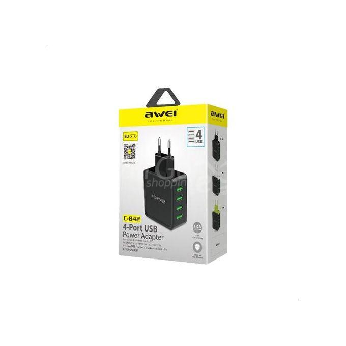 Awei C-842 Chargeur Mural USB Universel Ultra Compact avec 4 entrées USB 5 V 4 A