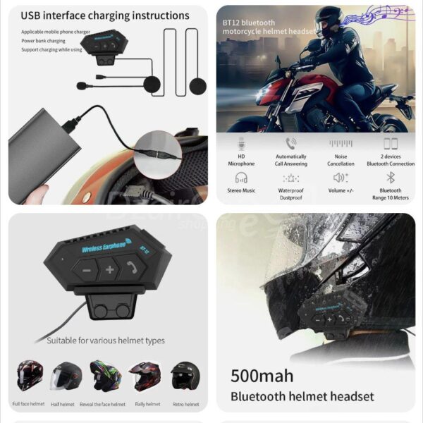 Bluetooth casque moto sans fil casque FM GPS deux côtés