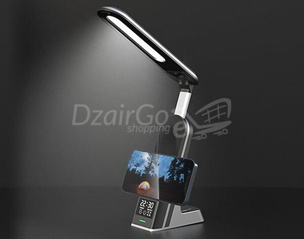 chargeur wireless Lampe de bureau LED pliable et robuste avec chargeur sans fil 7 en 1 et horloge numérique. smartwatch /montre connectée