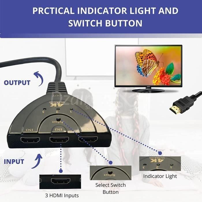 Adaptateur 3 Port HDMI Switch,Full HD 1080P HDMI Commutateur Distributeur 3 à 1 Flexible 3 x Entrées 1 x Sortie Dolby True HD Audio pour TV