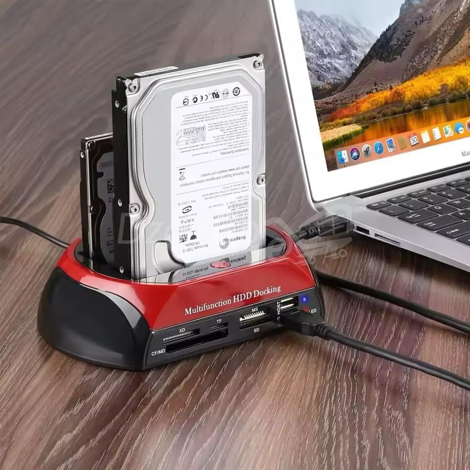 Station d’accueil pour disques durs HDD/SSD 2,5″ et 3,5″ avec lecteur de cartes USB 2.0 et interface SATA/IDE