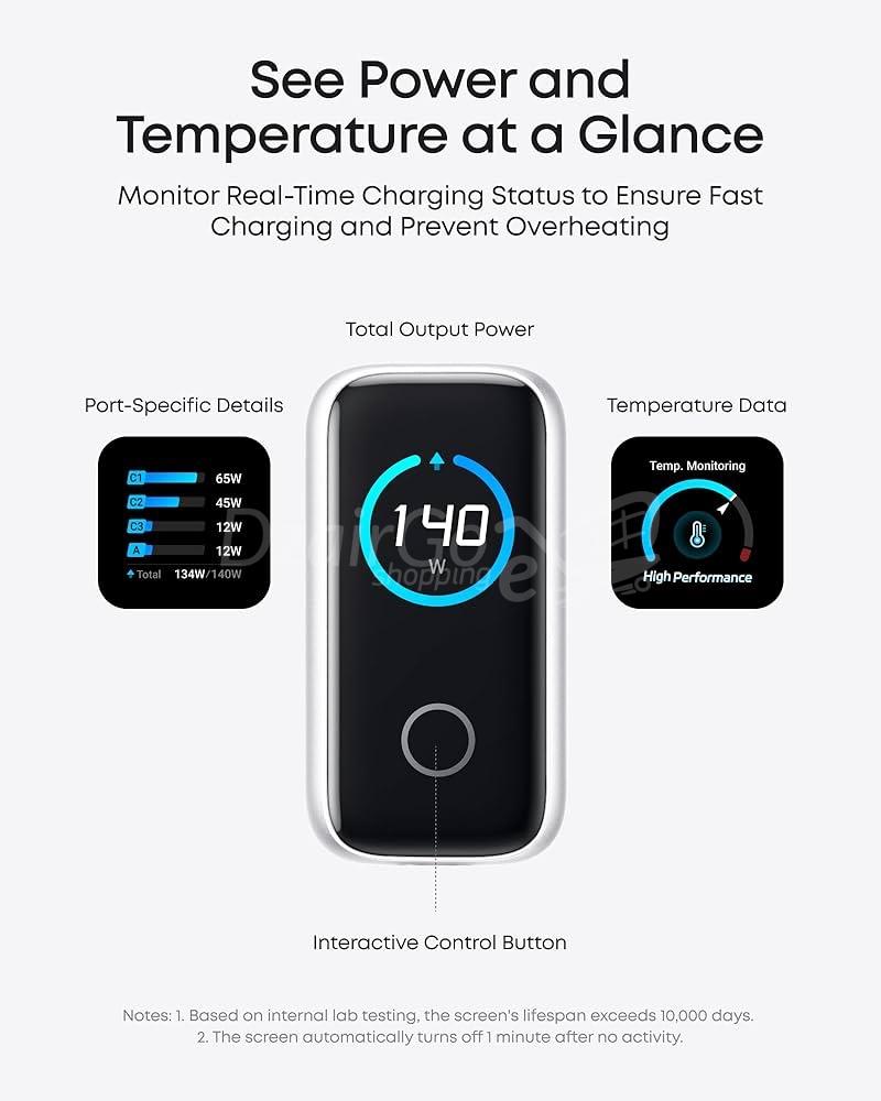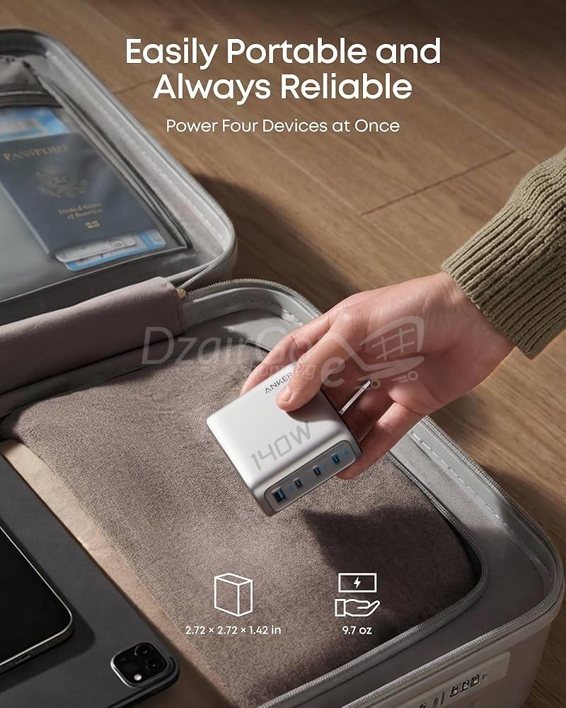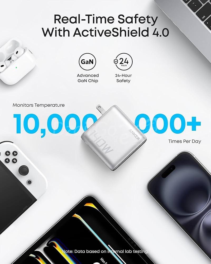 La surveillance en temps réel de la température garantit la sécurité de l’appareil, tandis que la technologie ActiveShield 2.0 d’Anker effectue jusqu’à 3 millions de contrôles de sécurité par jour. Le nitrure de gallium (GaN) de qualité aérospatiale utilisé dans l’appareil contribue à optimiser son efficacité.