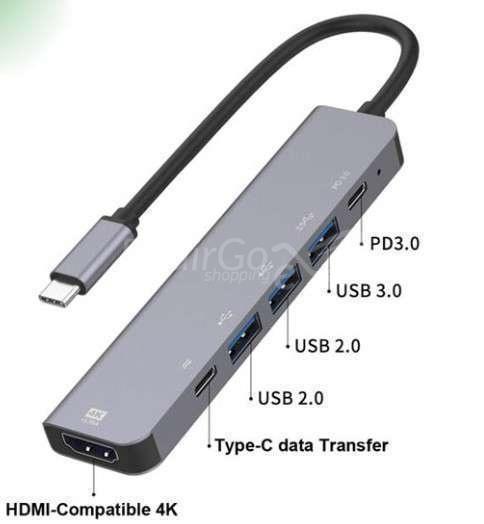 - Convertisseur multifonction 5 en 1 : design multi-ports avec 1 entrée USB-C 3.1 ; 1x sortie HDMI (4Kx2K) ; 1x sortie VGA (1080P) ; 1 sortie audio 3,5 mm ; 1 interface USB 3.0 (transmission haute vitesse) ; 1x port PD de type C (chargement uniquement).