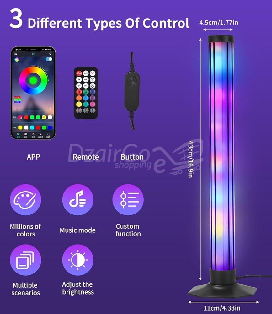 - Contrôle intelligent : Combinée à la commande vocale, à la télécommande infrarouge, à la télécommande Bluetooth APP et au bouton-poussoir, cette lampe gaming d’ambiance offre une flexibilité de contrôle inégalée