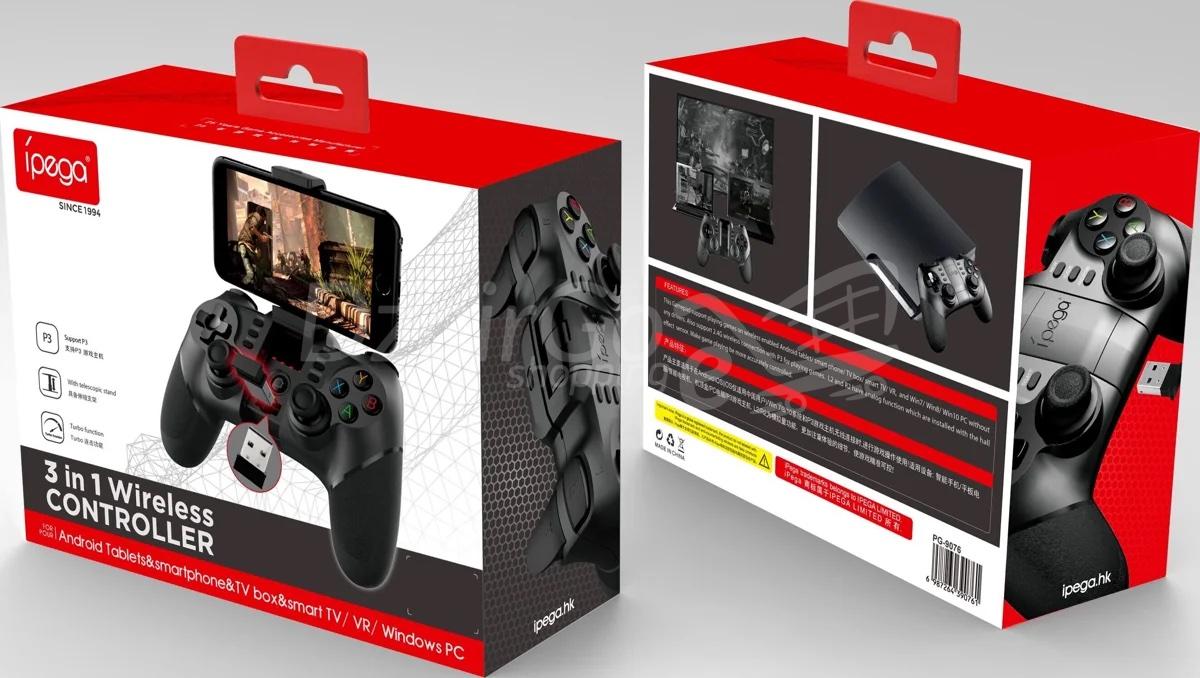 manette de jeu Connectivité: RF 2.4G, Bluetooth et Micro-USB Modèles compatibles: Sony PS3, téléphones portables Android et iOS, tablettes et PC Système de support: Android 3.2; iOS 7 ci-dessus (mode i-Cade UNIQUEMENT!), PC Windows 7/8/10 / XP, Mac OS Batterie: Li-on 3.7V / 380mAh Emballage: 1 * iPega PG-9076 1 * câble USB (longueur 80cm) 1 * 2.4G Récepteur Bluetooth