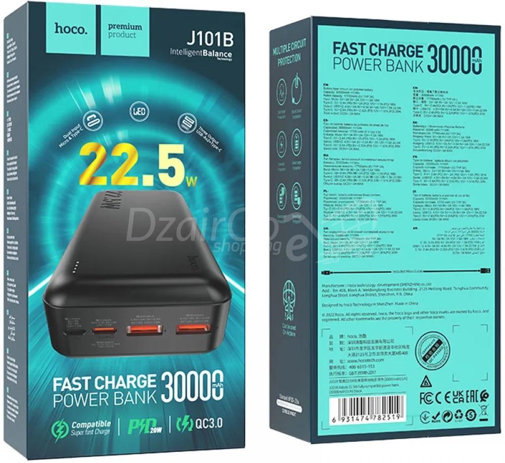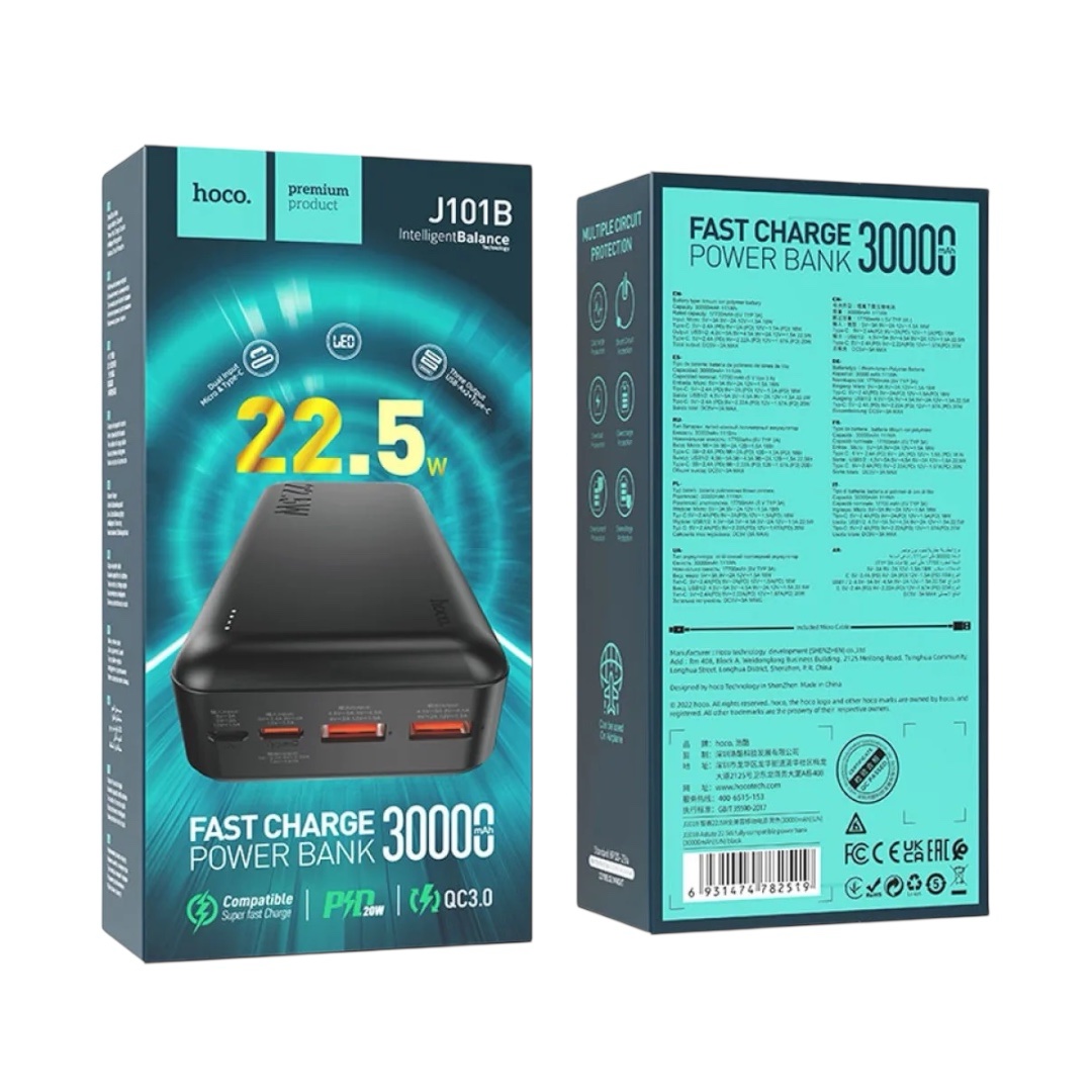 Power Bank J101B Astute – Hoco, est une banque d’alimentation haute capacité, dotée d’une impressionnante puissance de 30 000 mAh et d’une vitesse de charge rapide de 22,5 W. Cette batterie portable fiable accompagne vos déplacements, voyages et aventures quotidiennes, garantissant que vous ne serez jamais à court de batterie, peu importe où vous vous trouvez.